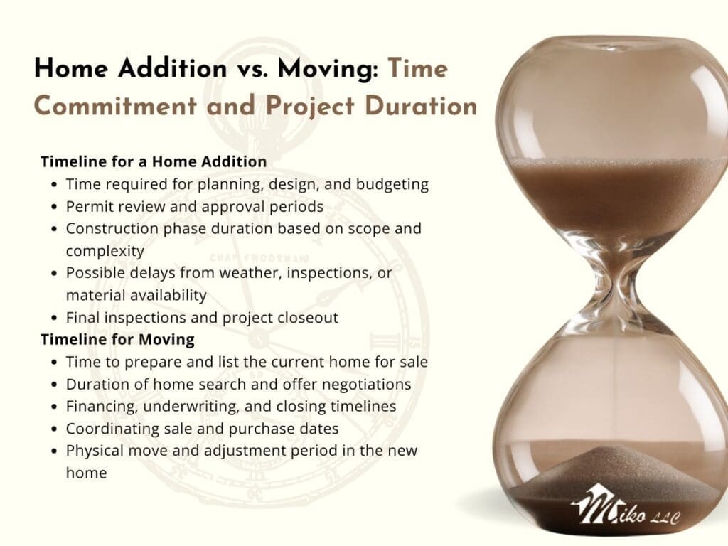 Home additions tend to offer greater design flexibility and continuity but require patience, upfront planning, and the ability to live through construction. Moving can provide immediate access to more space and different amenities, yet it comes with market uncertainty, transaction costs, and the challenges of relocation.