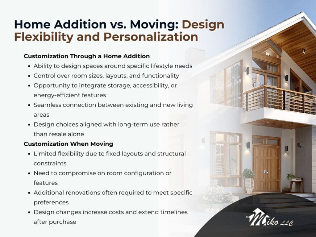 However, when staying in a preferred location, maintaining community ties, and customizing living space are top priorities, a well-planned home addition is often the more practical and controlled solution. When structural limitations, major system upgrades, or a desire for a completely new environment outweigh those factors, moving may be the more appropriate path.