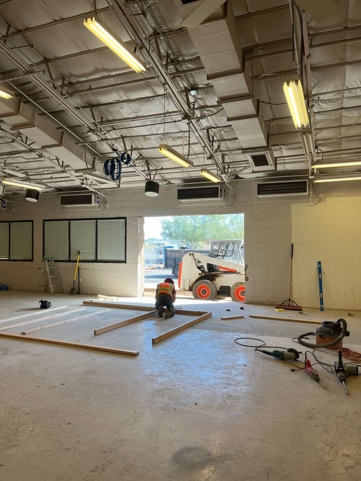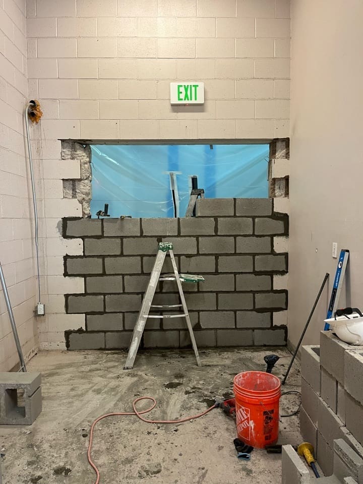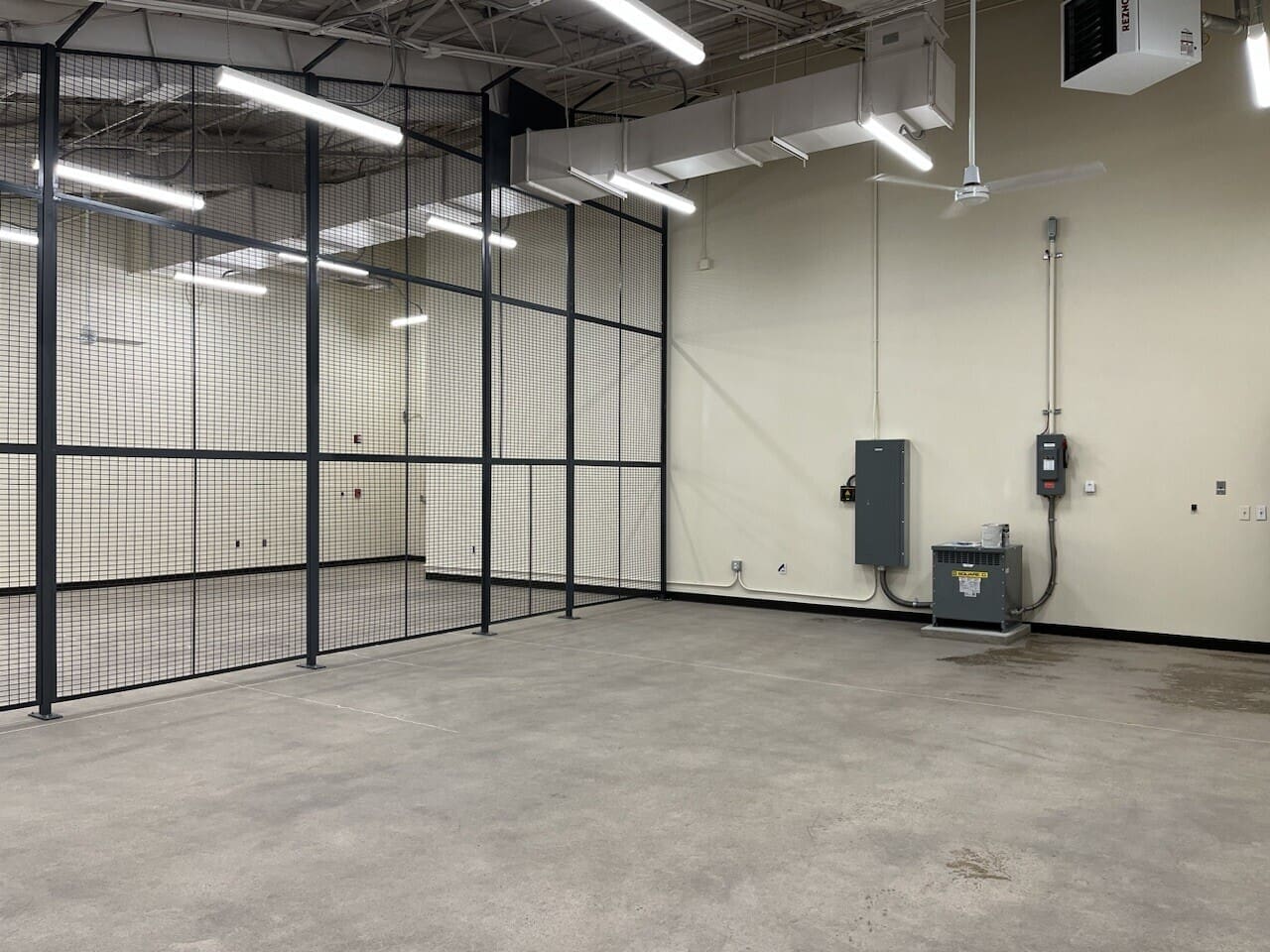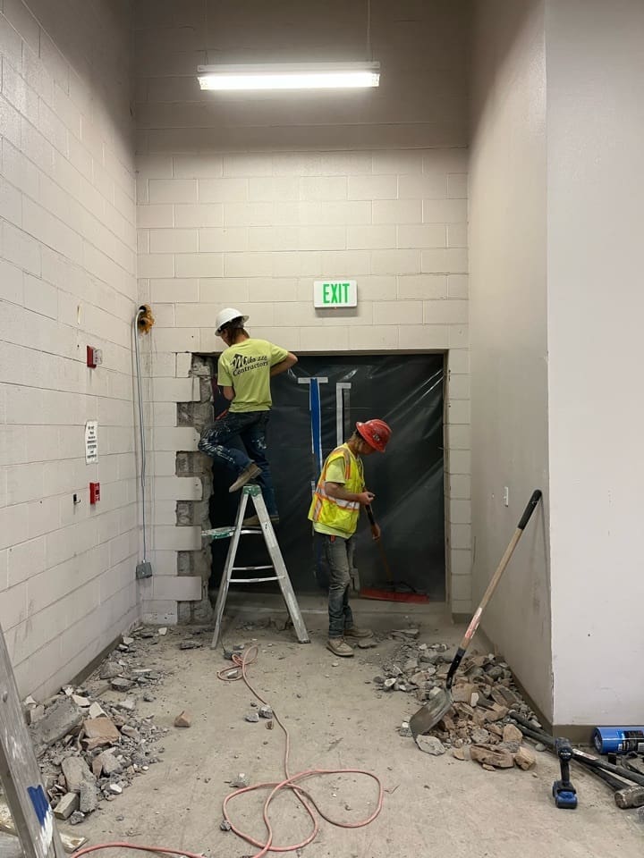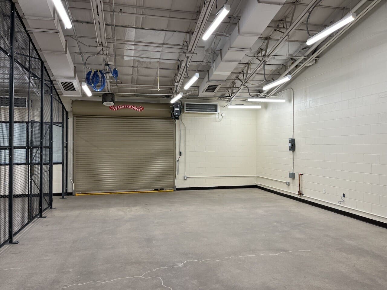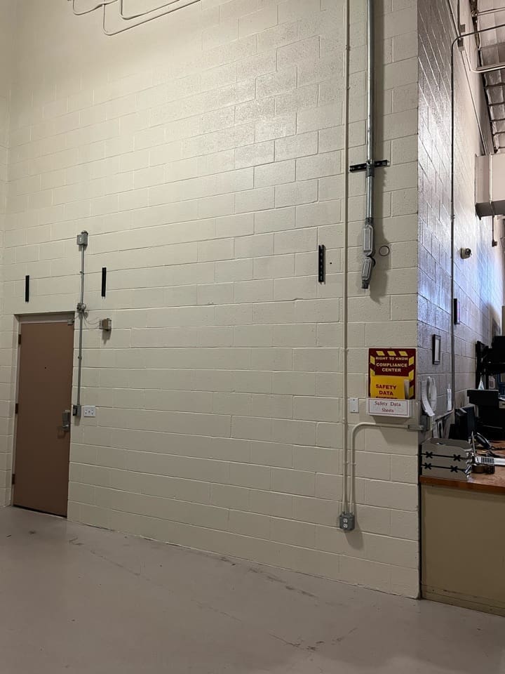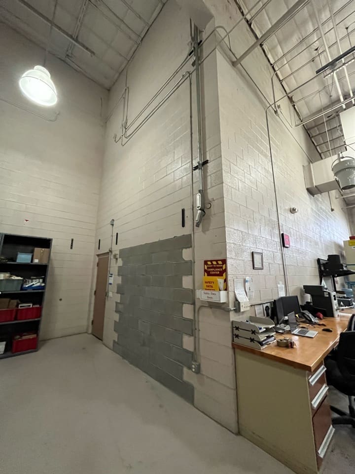 Miko, LLC performed a targeted renovation and infrastructure upgrade for the LRS Storage Room in Building 15 at a fully operational government facility. The scope included asbestos testing and epoxy floor removal, concrete grinding and polishing, wall painting, and installation of a new motorized overhead coiling door. Additional work involved demolition and infill of existing door openings, removal of salvageable equipment, and construction of a full-height interior security partition with lockable gate access.