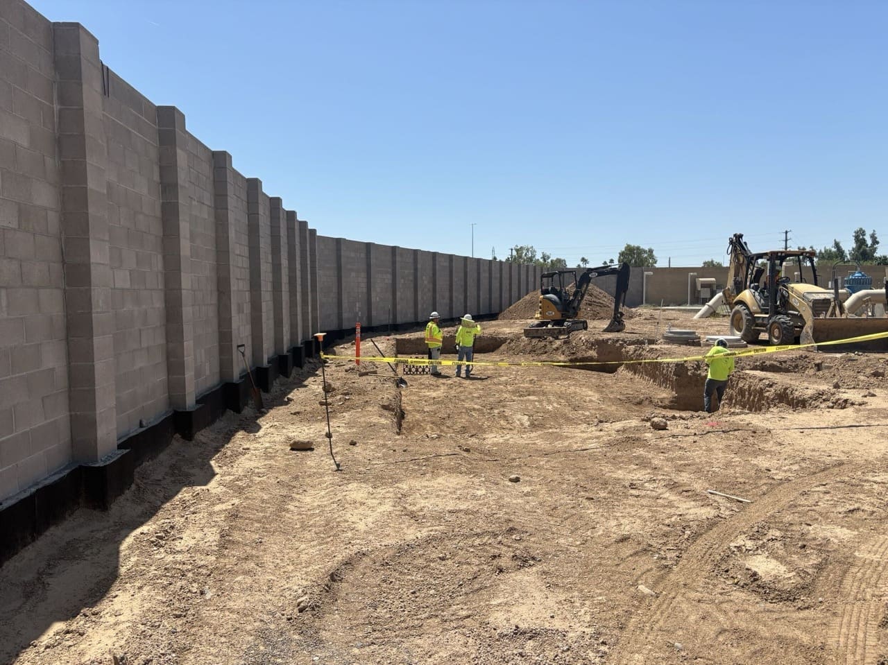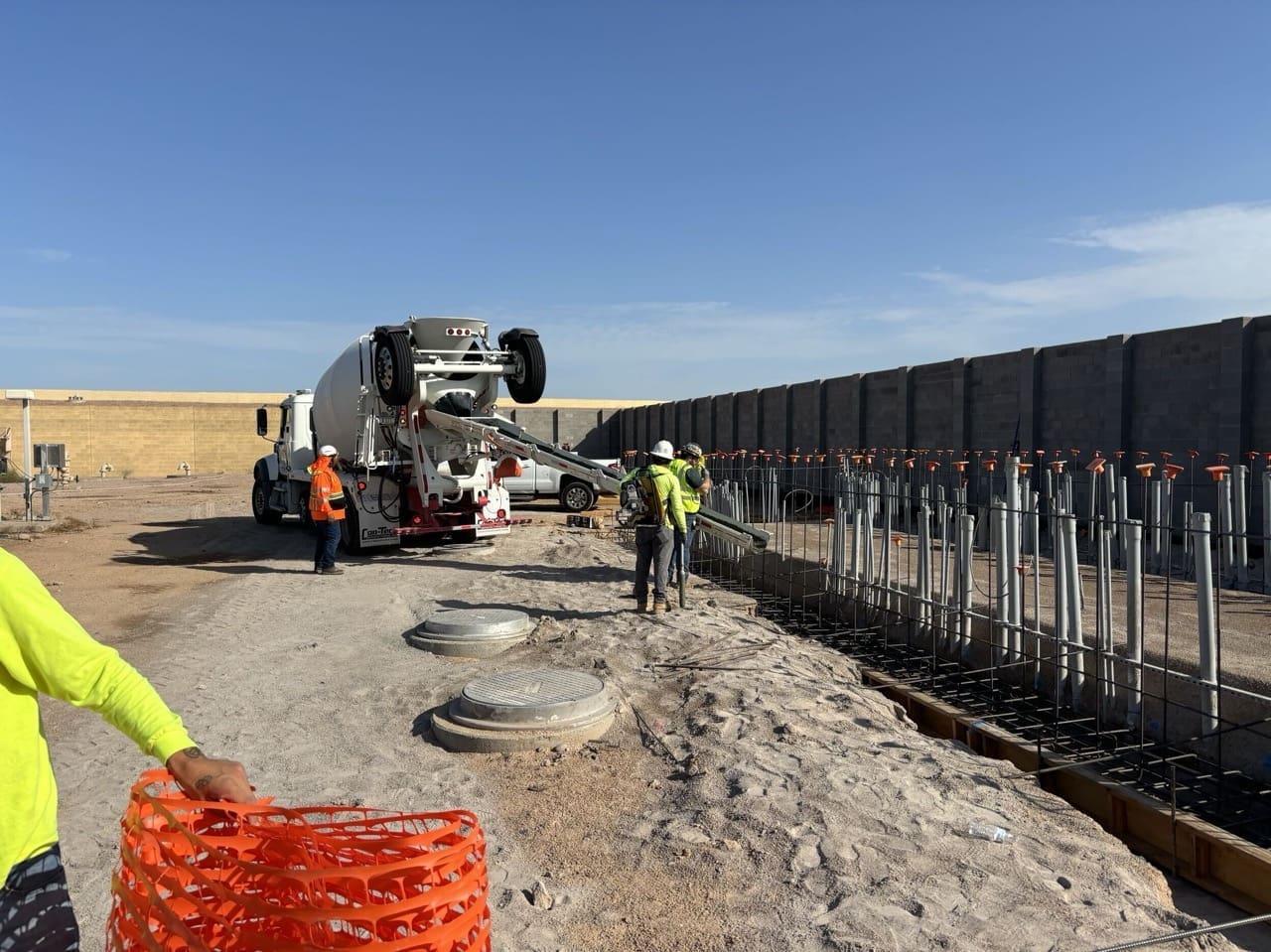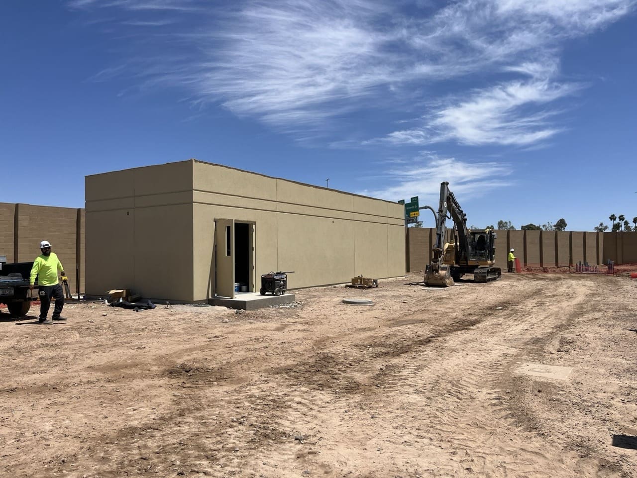 Miko, LLC completed the structural and envelope scope for the Electrical Building portion of the City of Phoenix Booster Pump Station Rehabilitation (1-B3 BPS). The scope included forming and pouring concrete footings, equipment pads, and slab-on-grade foundation, followed by construction of CMU masonry walls with EIFS system.