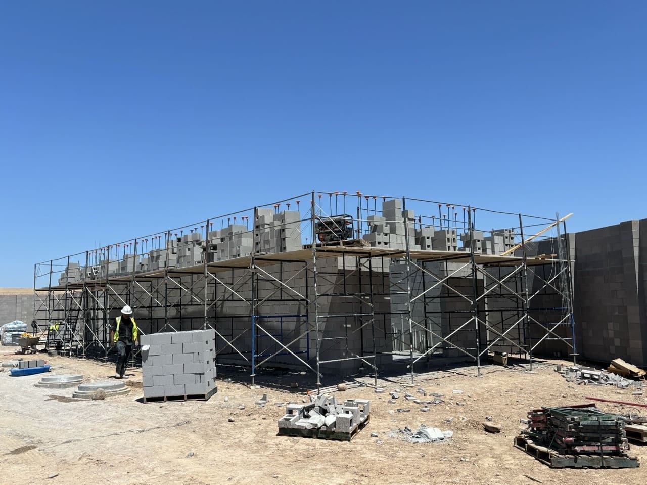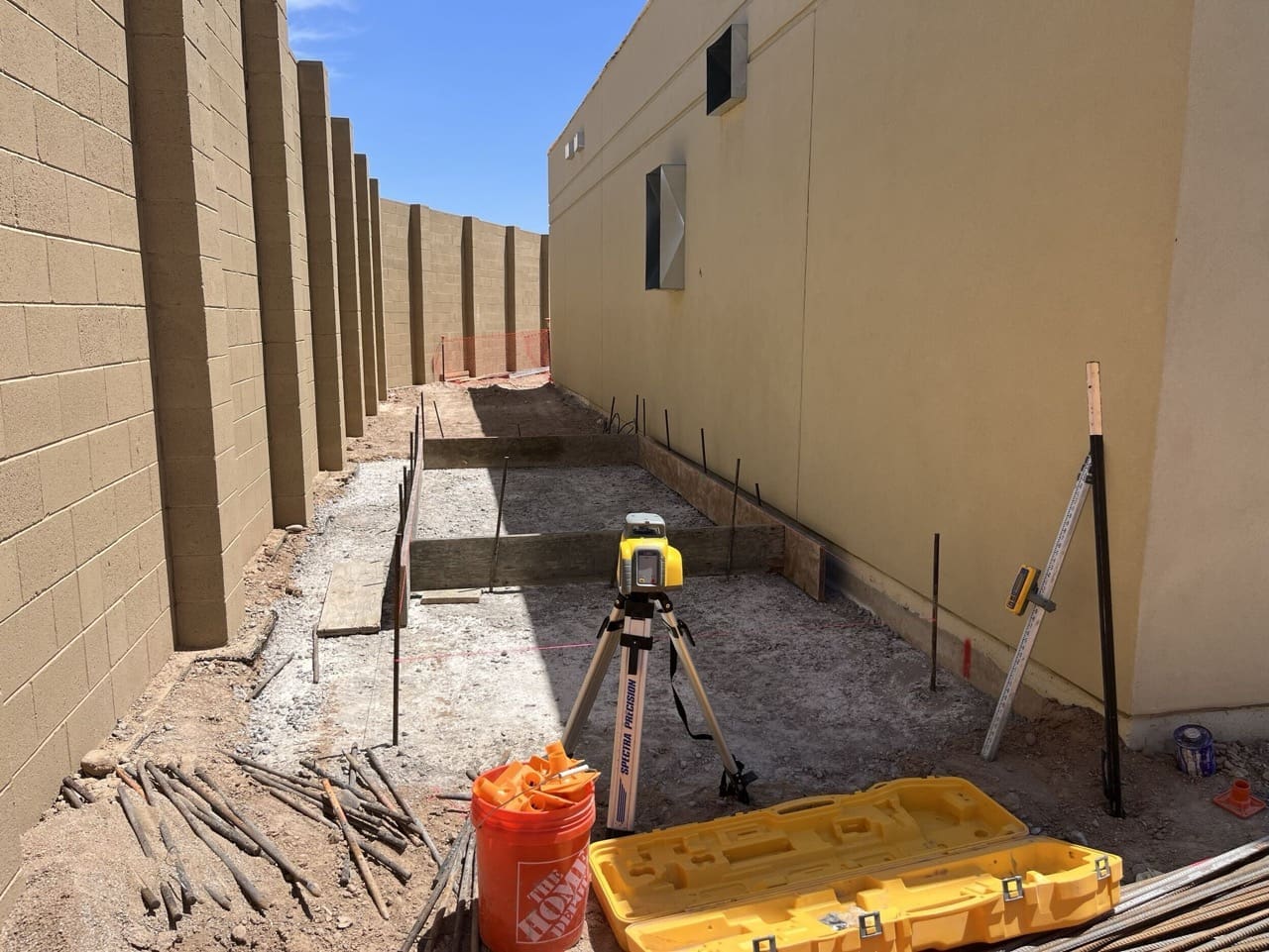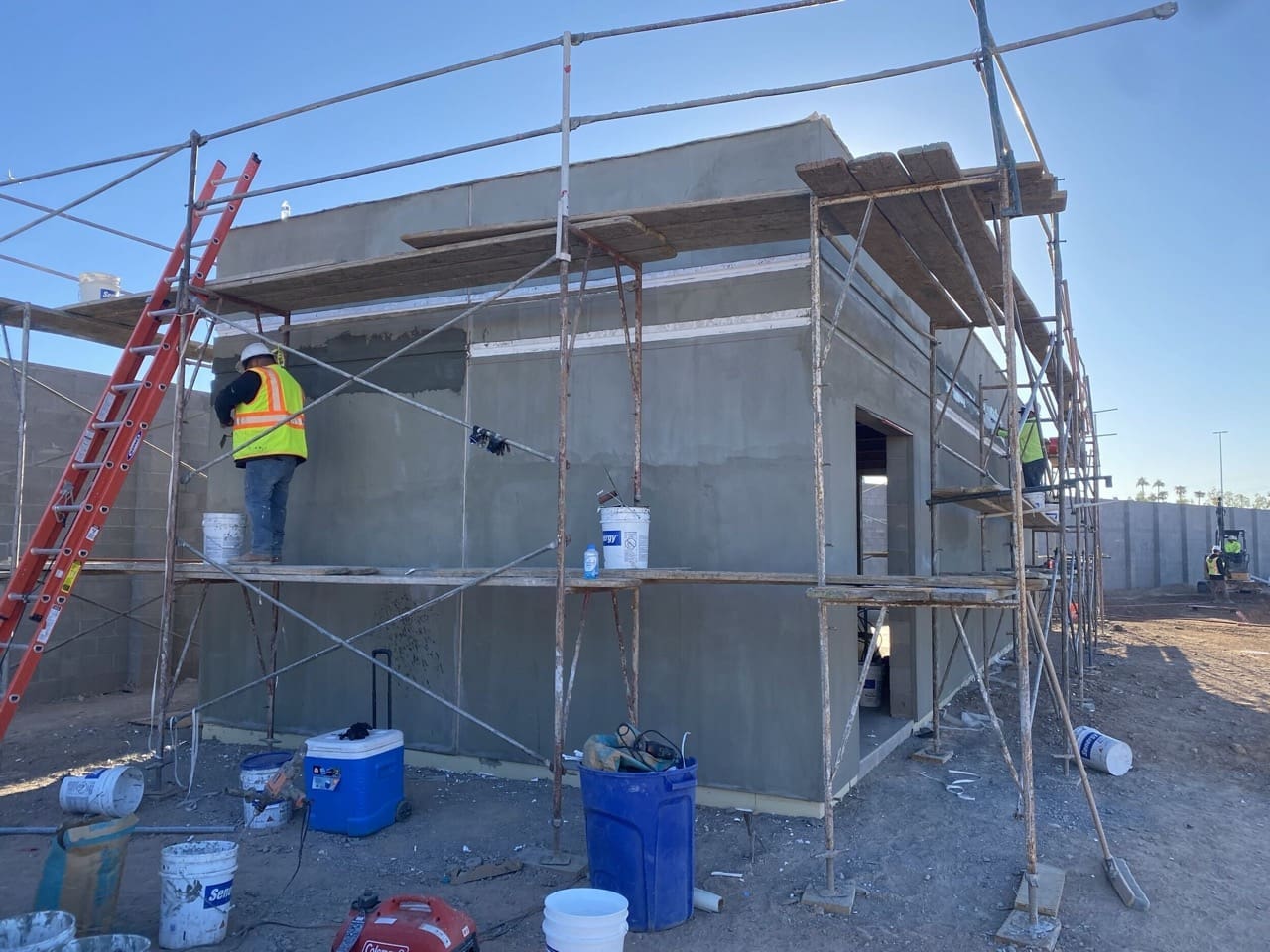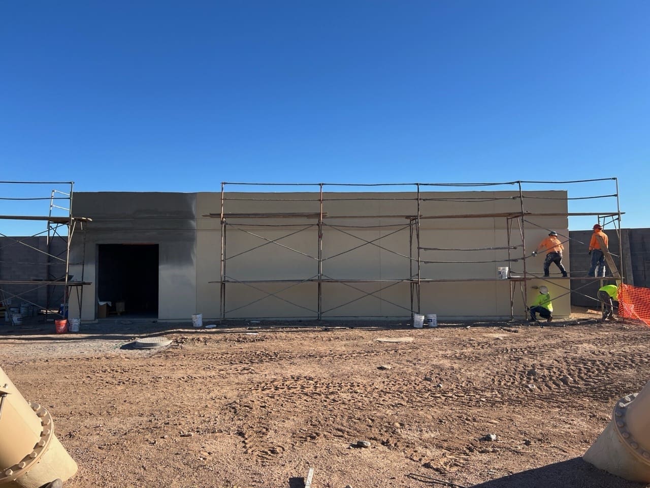 Miko, LLC completed the structural and envelope scope for the Electrical Building portion of the City of Phoenix Booster Pump Station Rehabilitation (1-B3 BPS). The scope included forming and pouring concrete footings, equipment pads, and slab-on-grade foundation, followed by construction of CMU masonry walls with EIFS system.