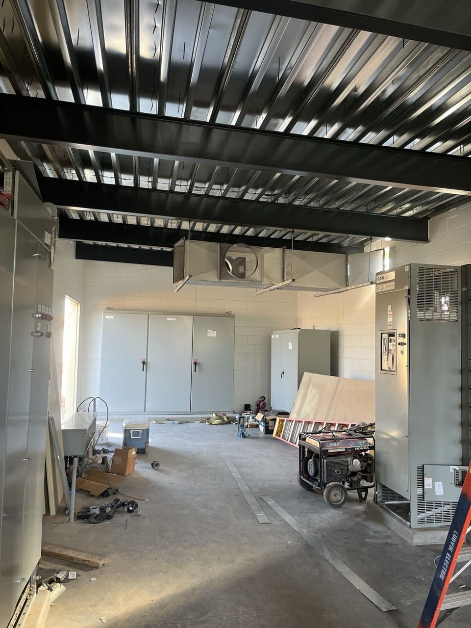 We fabricated and installed the structural roof framing system, decking, and fiberglass-insulated roof assembly, along with full HVAC system integration. All exterior and interior finishes were applied per specifications, concrete sealing, door and hardware installation, and complete drainage systems with scuppers and downspouts.