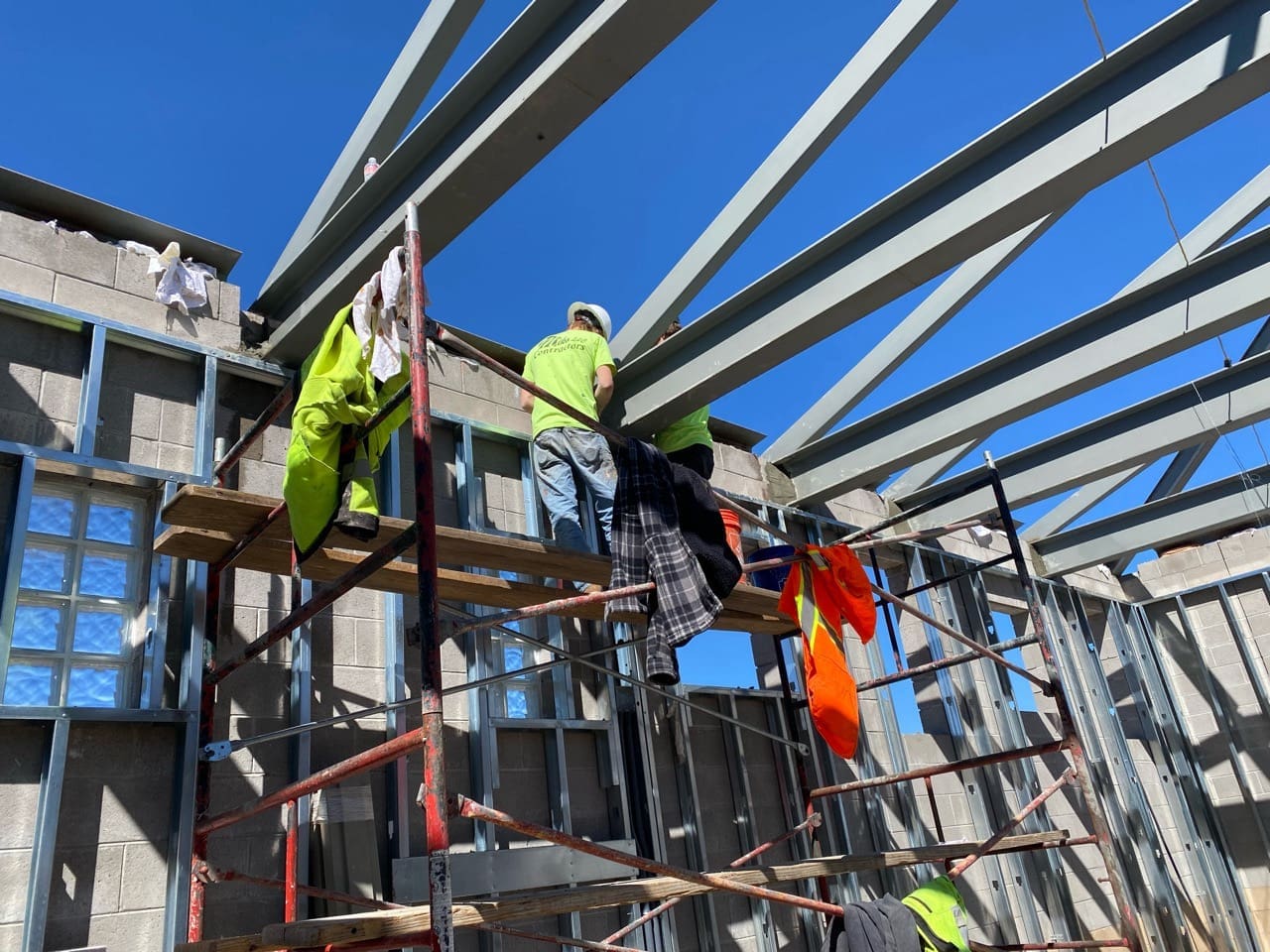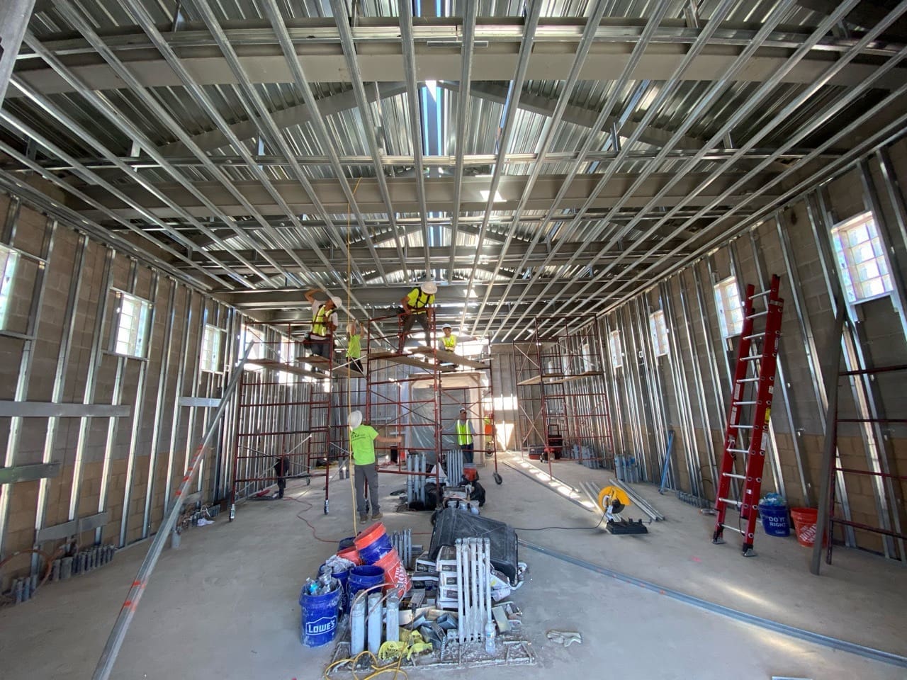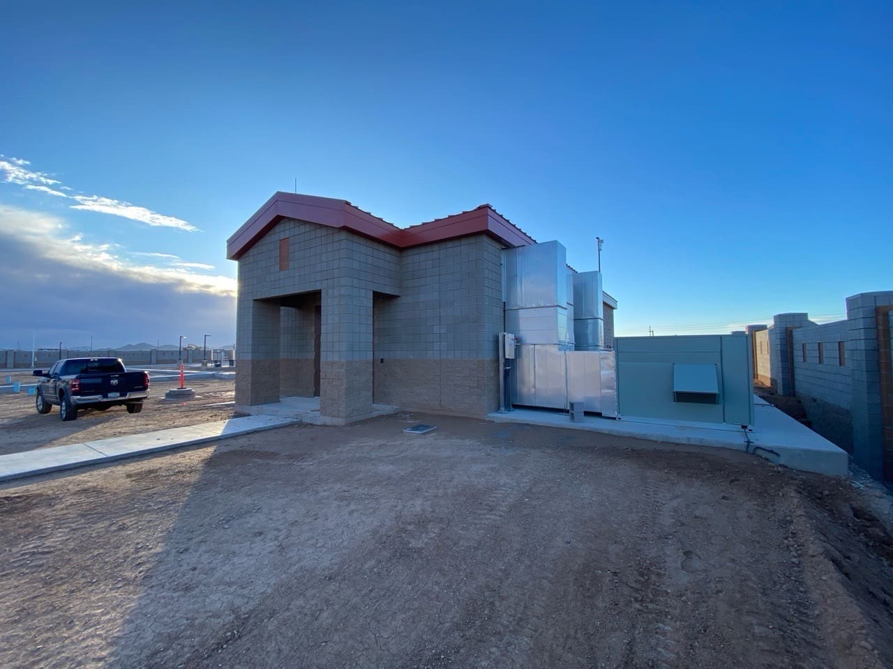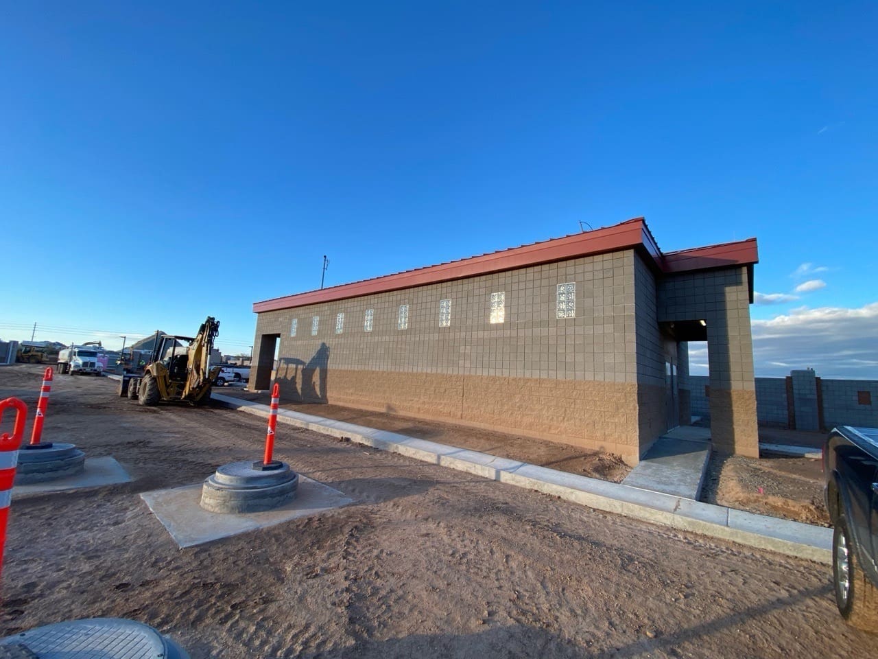 The project included structural roof framing, interior wall systems, insulation, and drywall throughout. Miko self-performed both rough and finish plumbing for the restroom facility, with exterior stub-outs, and installed a complete HVAC system. Final deliverables included door and hardware installation, interior and exterior painting, ceramic tile finishes, and concrete floor sealing.