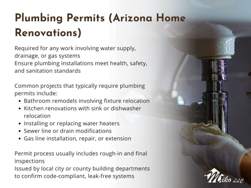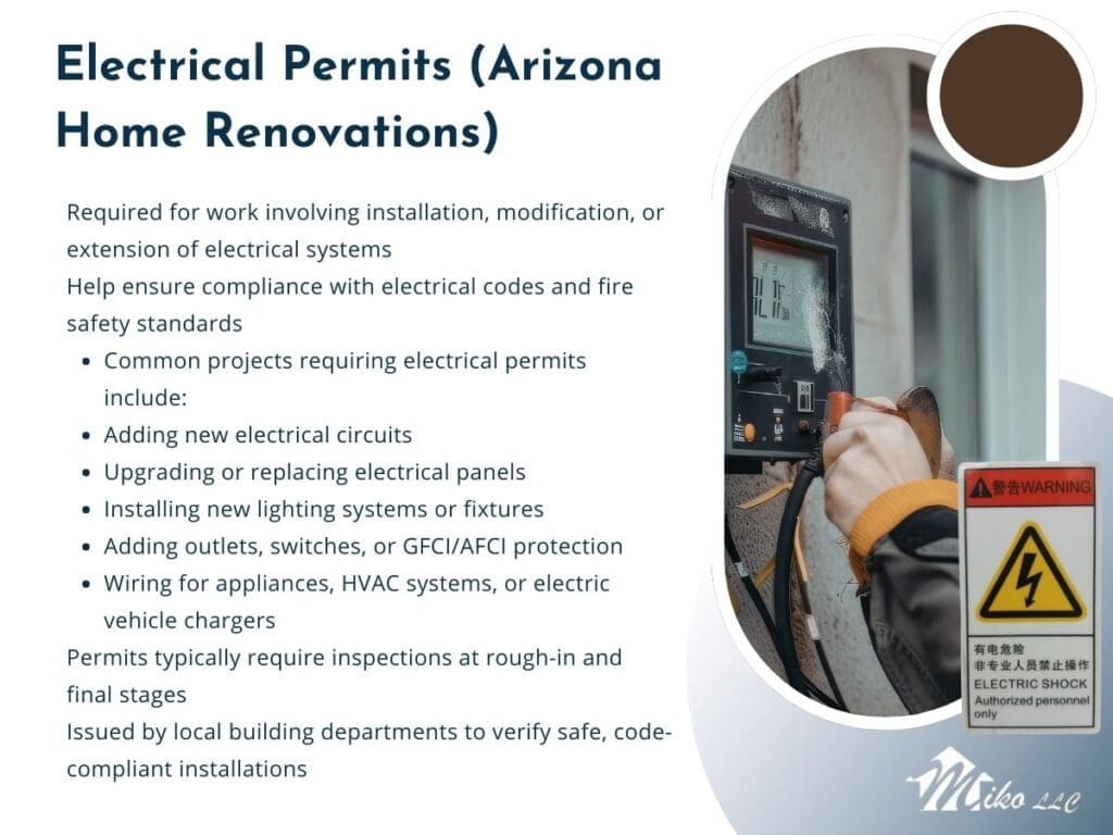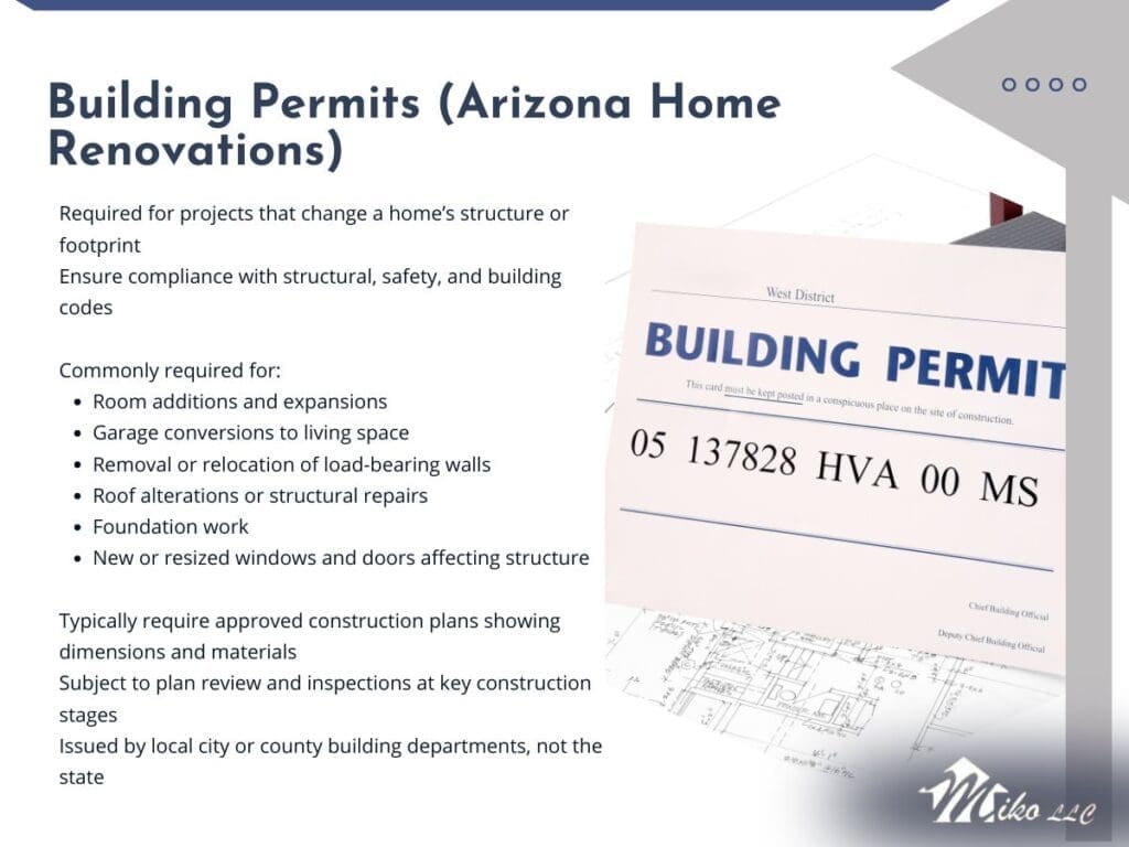 While permit requirements vary by jurisdiction, the following renovation types almost always require permits in Arizona: